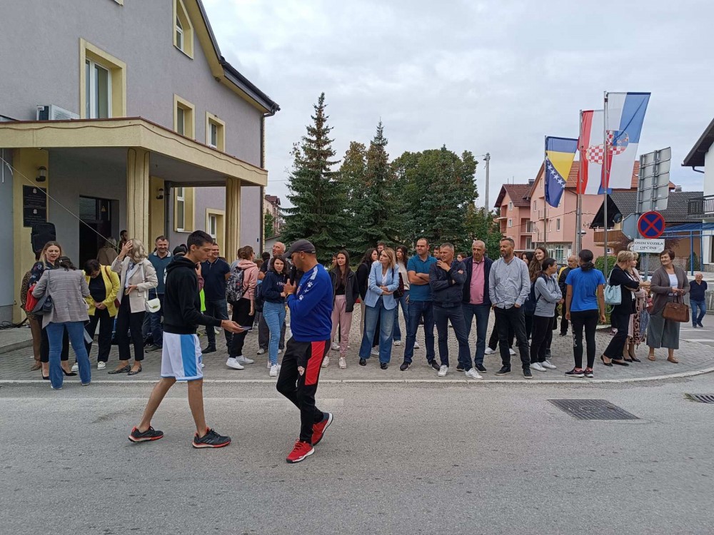 i profesorima došli ispred zgrade općine. Nastavnik Ivica Lozančić